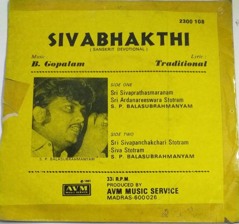 Siva Bhakthi sanskrit Devotional EP Vinyl Record by SP Balasubramaniam