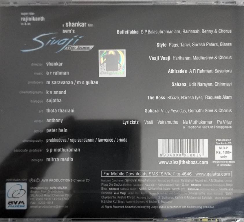 Sivaji Tamil Film Audio CD by A R Rahman