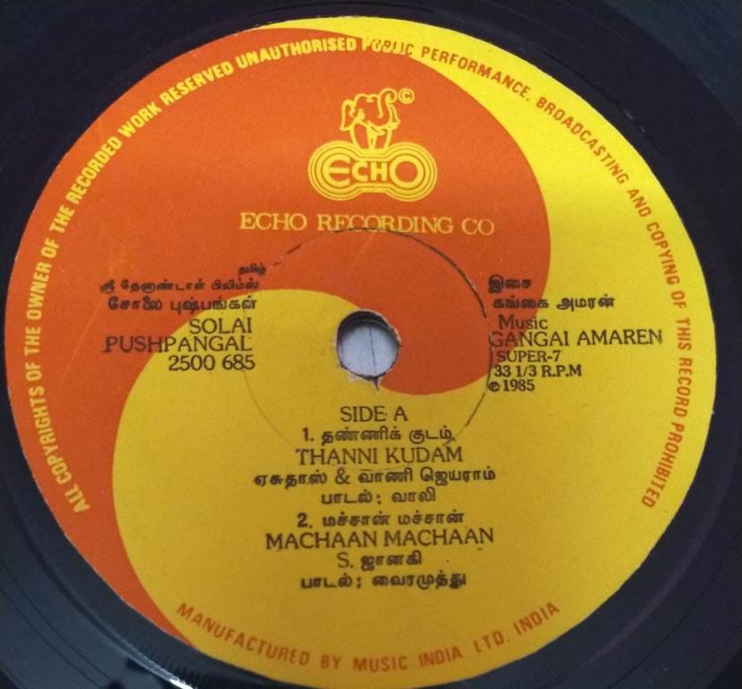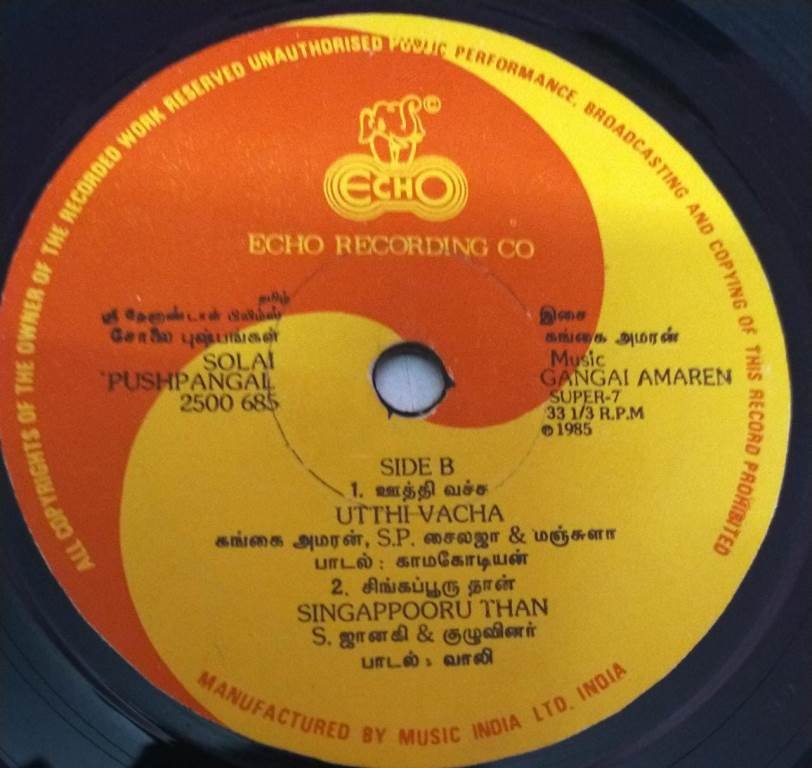 Solai Pushpangal Tamil Film EP Vinyl Record by Gangai Amaren
