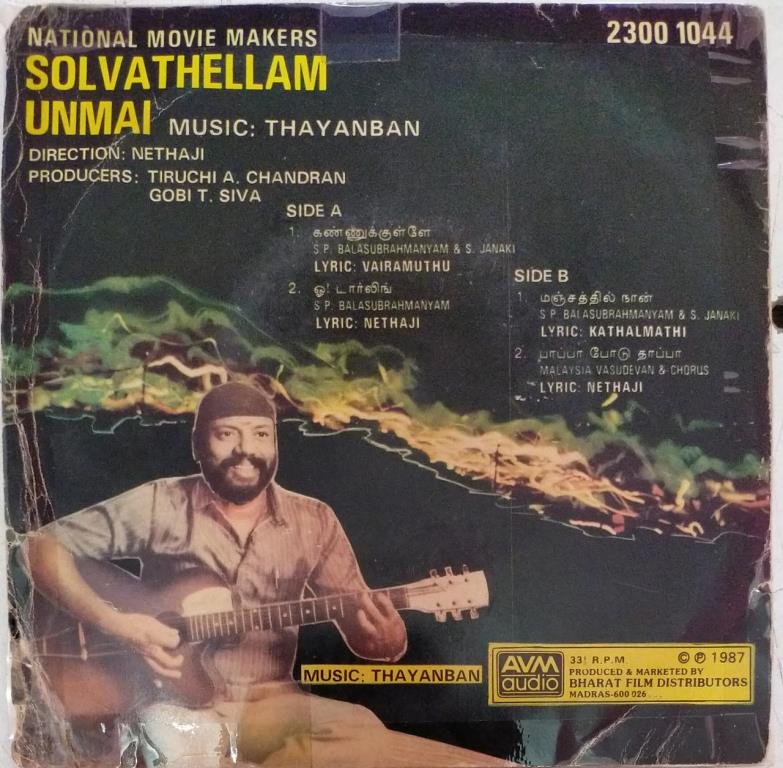 Solvathellam Unmai Tamil Film EP Vinyl Record by Dhayanban