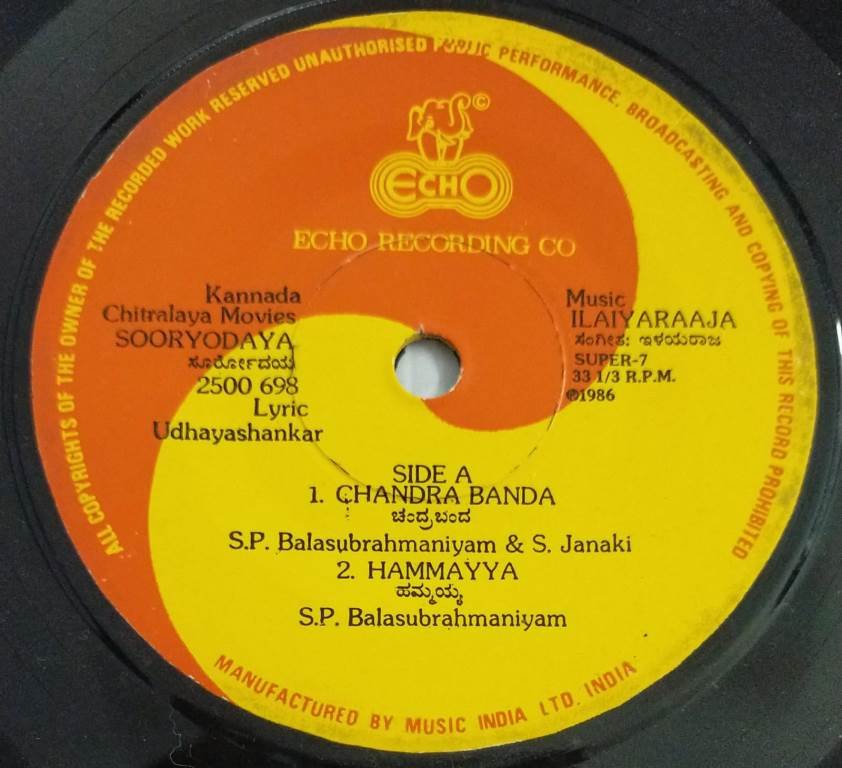 Sooryodaya Kannada Film EP Vinyl Record by Ilayaraaja