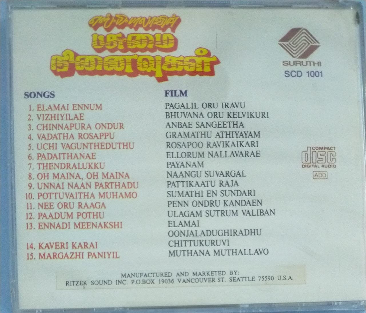 SPB in Pasumai Ninaivugal Tamil Film Hits Audio CD