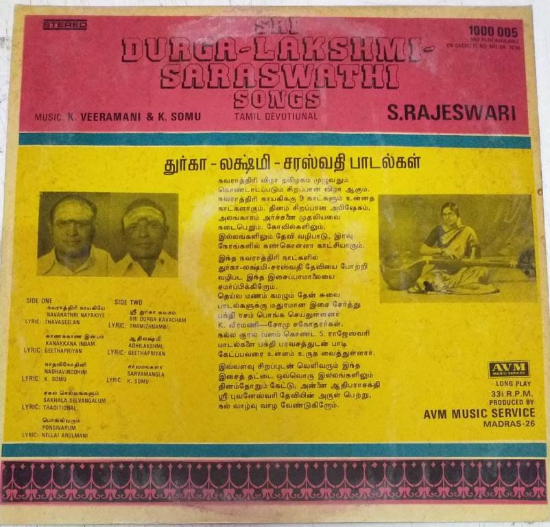 Sri Durga Lakshmi Saraswathi Songs Tamil devotional LP Vinyl Record by S Rajeswari