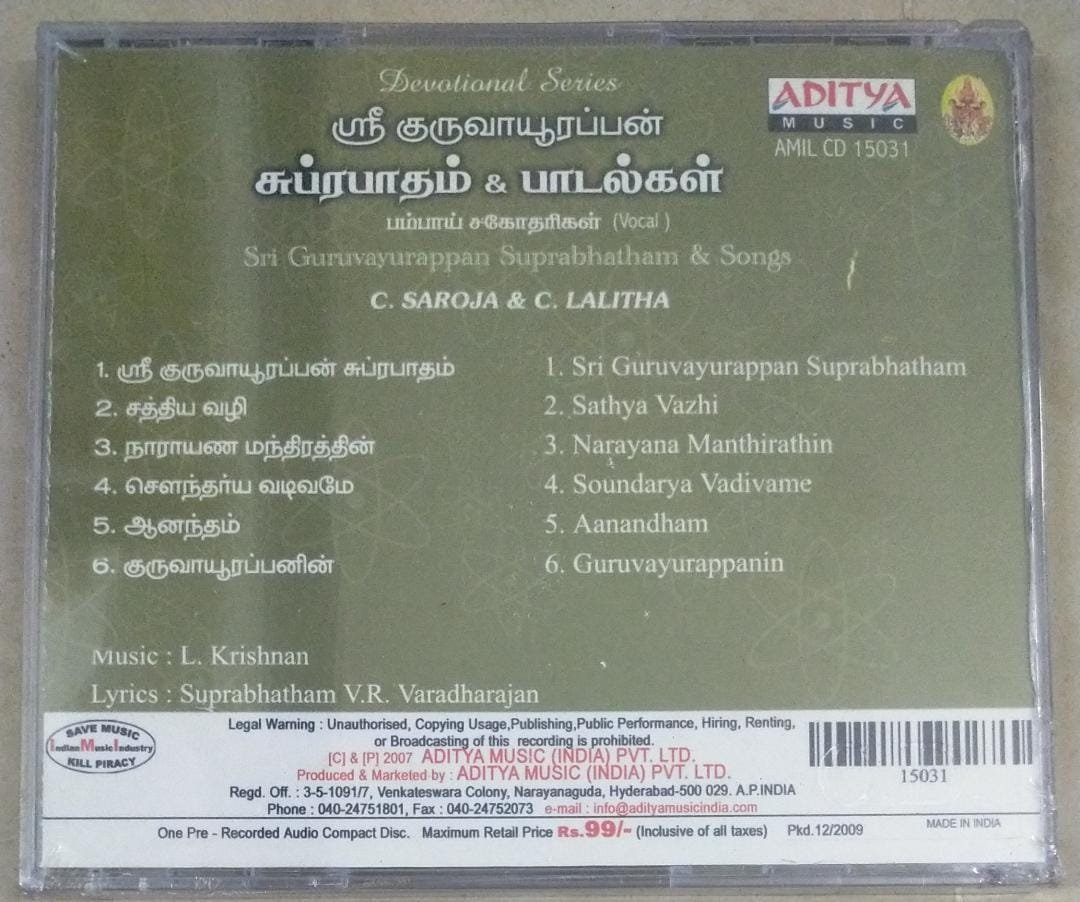 Sri Guruvayurappan Suprabhatam Tamil Devotional Audio CD by Bombay sisters