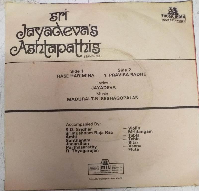 Sri Jayadevas Ashtapathis Sanskrit EP Vinyl Record by T N Seshagopalan