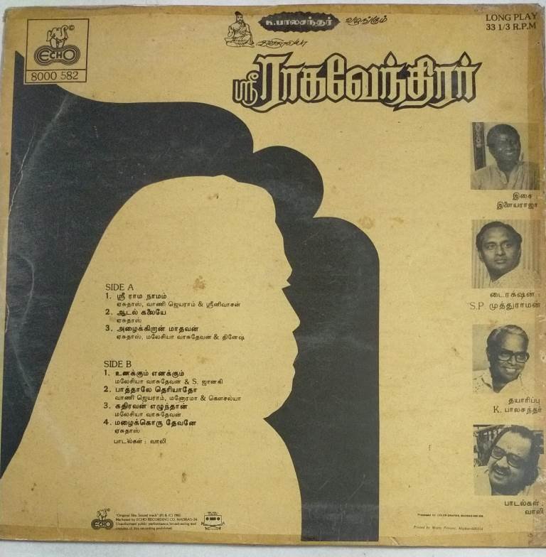 Sri Ragavendirar Tamil Film LP Vinyl Record by Ilayaraaja
