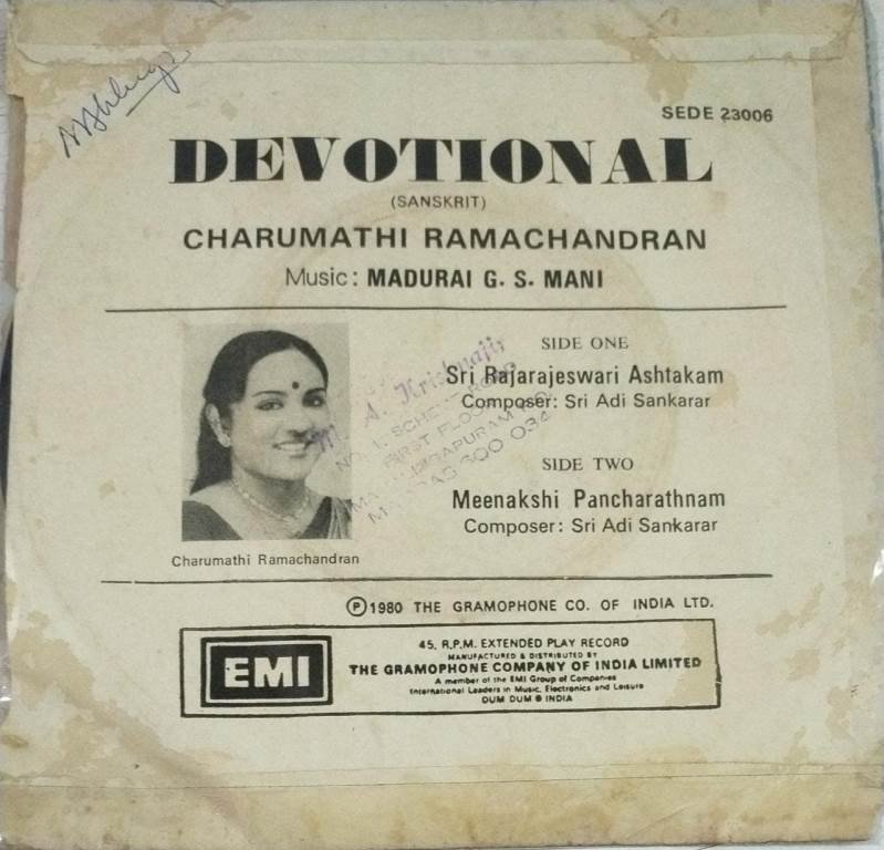 Sri Rajeshwari Ashtakam Meenakshi Pancharatnam Devotional EP Vinyl Record