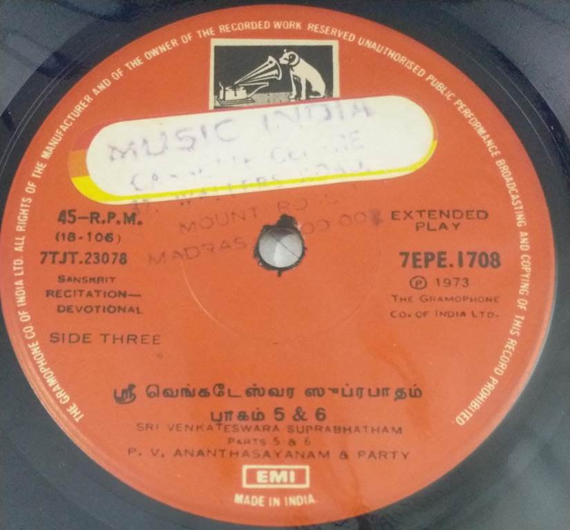 Sri Venkateshwara Suprabhatam EP Vinyl Record
