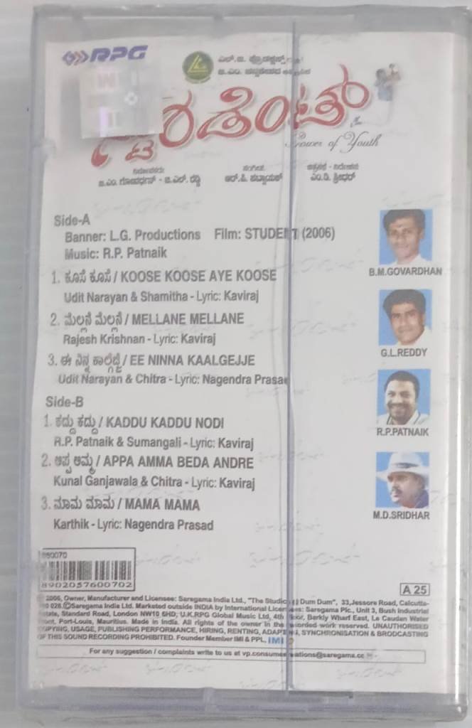 Student Kannada Film songs Audio Cassette (sealed Pack)