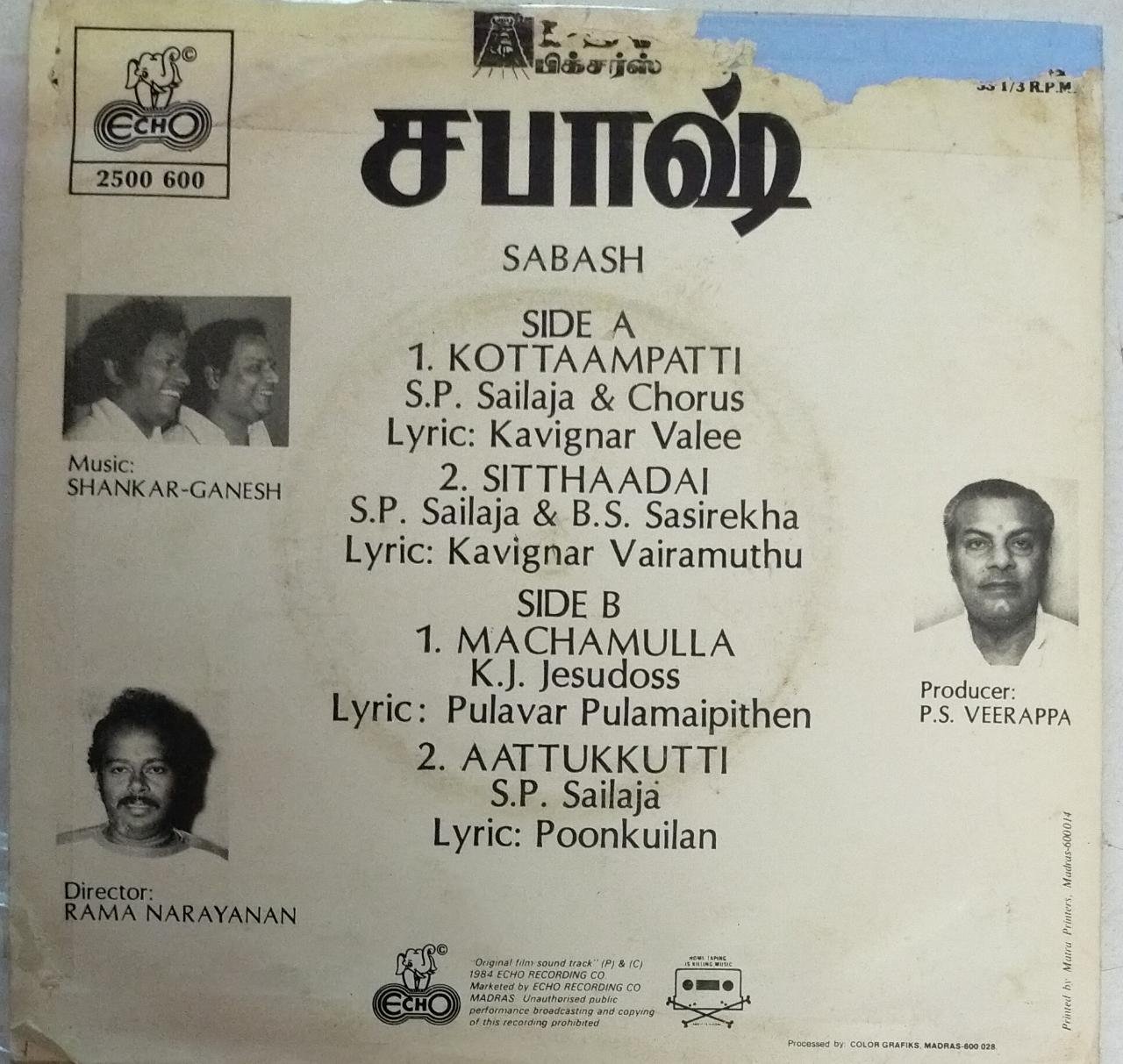 Subash Tamil Film Super 7 EP Vinyl Record by Shankar Ganesh