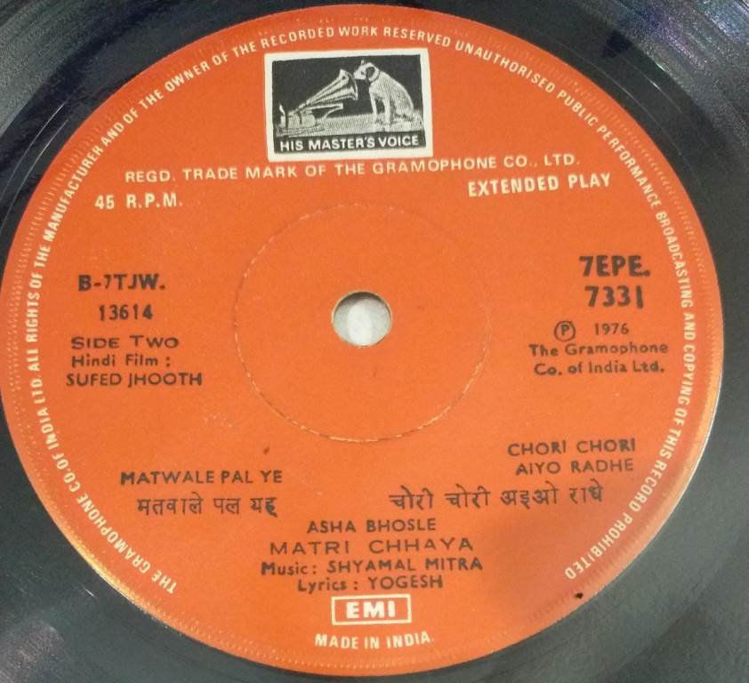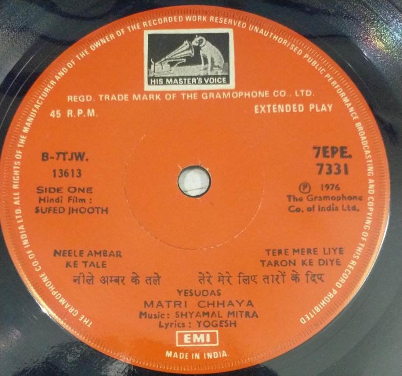 Sufed Jhooth Hindi Film EP Vinyl Record by Shyamal Mitra