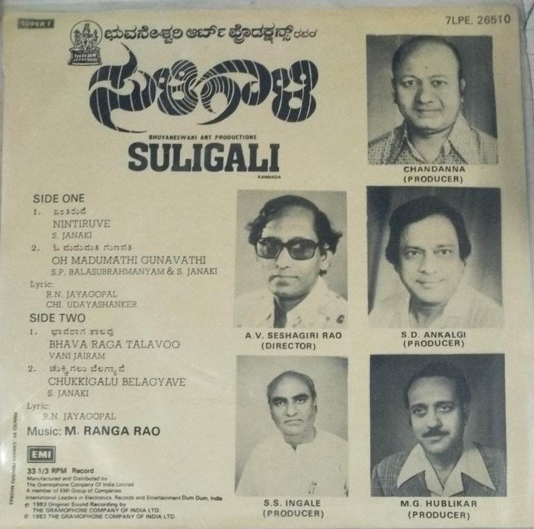Suligali Kannada Film EP Vinyl Record by M Ranga Rao
