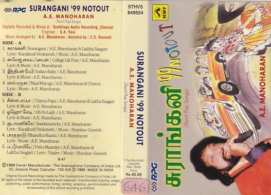 Surangani 99 Not out Tamil Audio Cassette by A E Manoharan