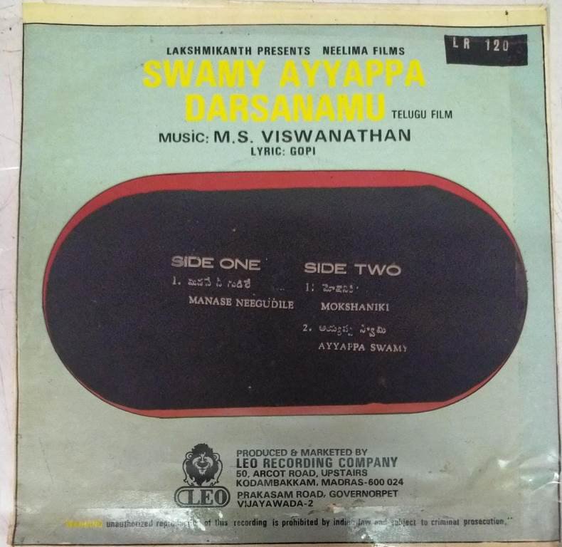 Swamy Ayyapa darsanamu Telugu Film EP Vinyl Record by M S Viswanathan