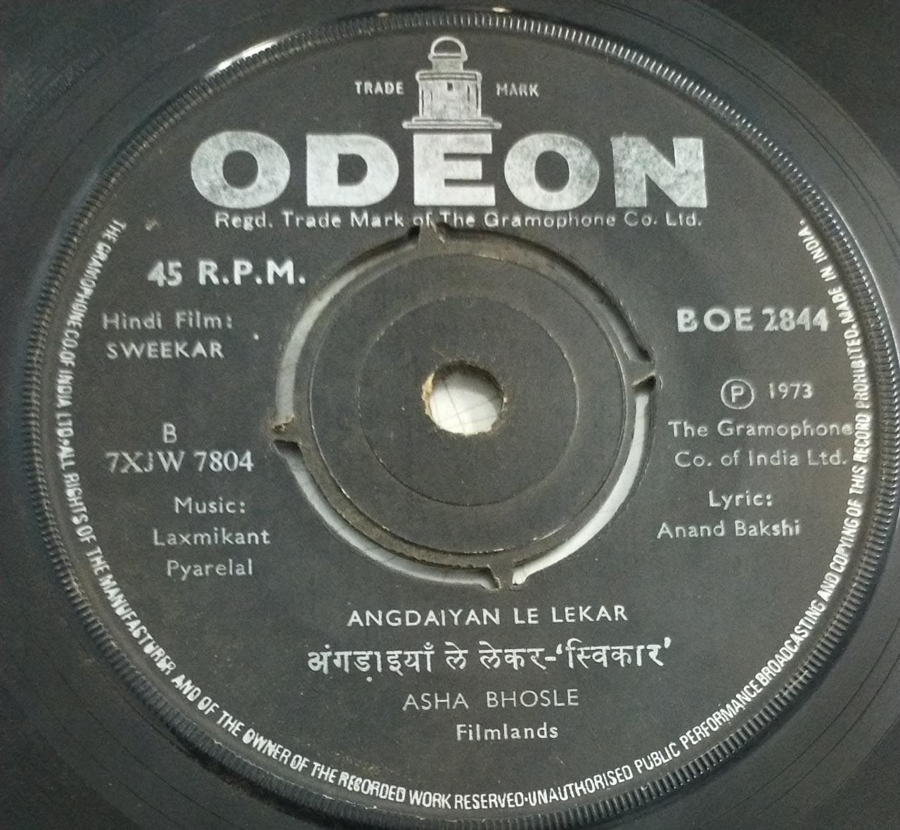 Sweekar Hindi Film EP Vinyl Record by Laxmikant Pyarelal