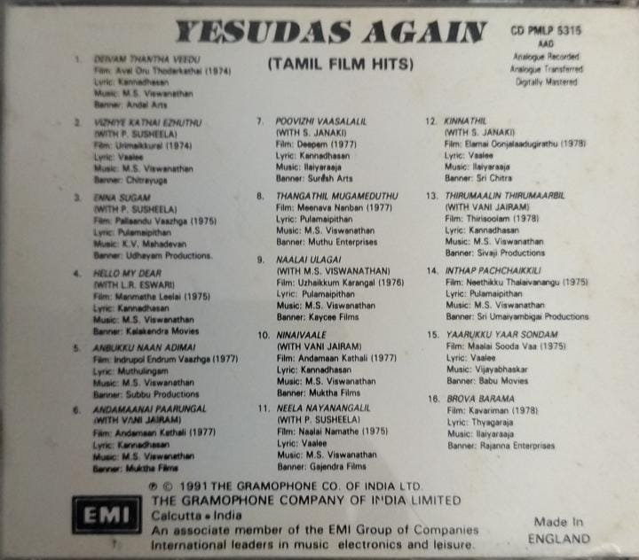 Tamil Film Hits Audio CD by K J Jesudass
