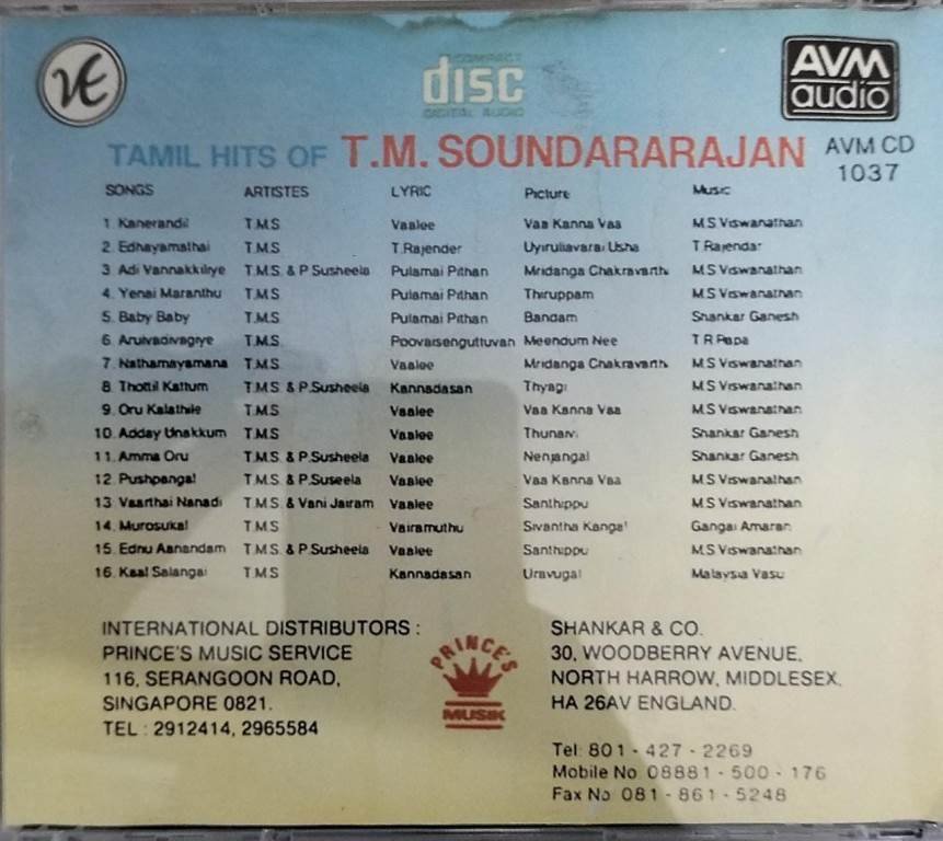 Tamil Film Hits Audio CD by TM Souderarajan