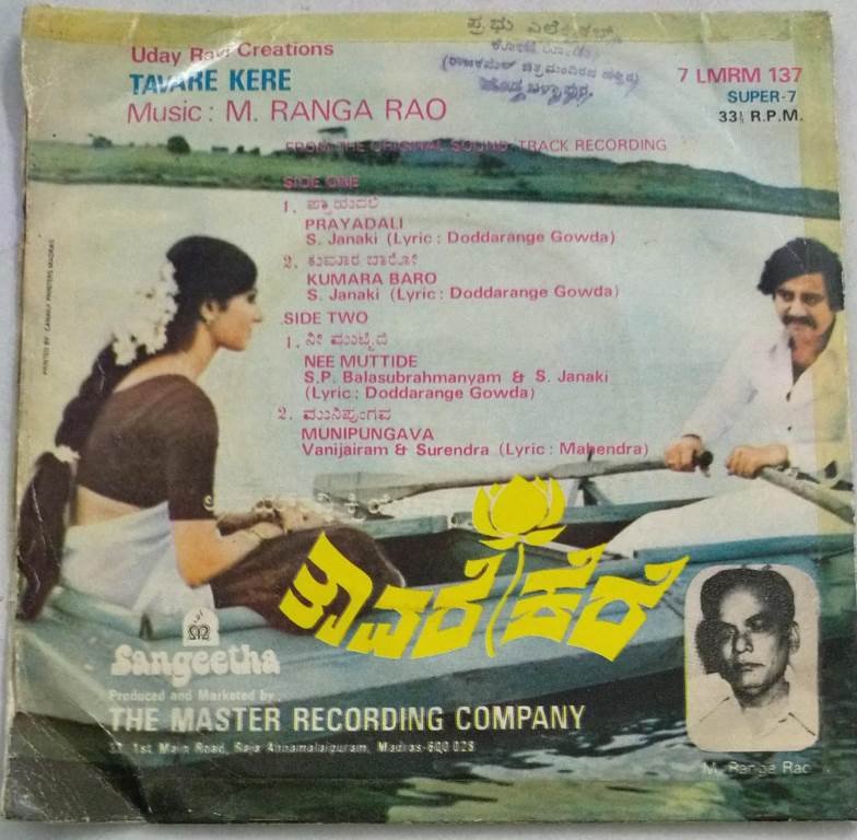 Tavare Kere Kannada Film EP Vinyl Record by M Ranga Rao