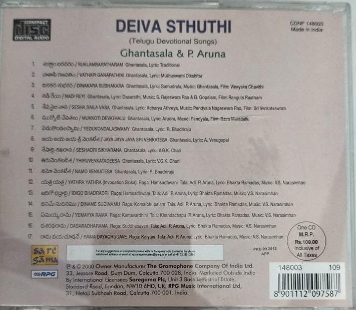 Telugu Devotional songs Audio CD by Ghantasala- P Aruna 1