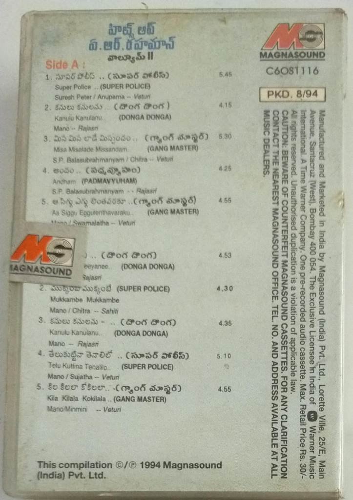 Telugu Film Hits Audio Cassette by AR Rahman