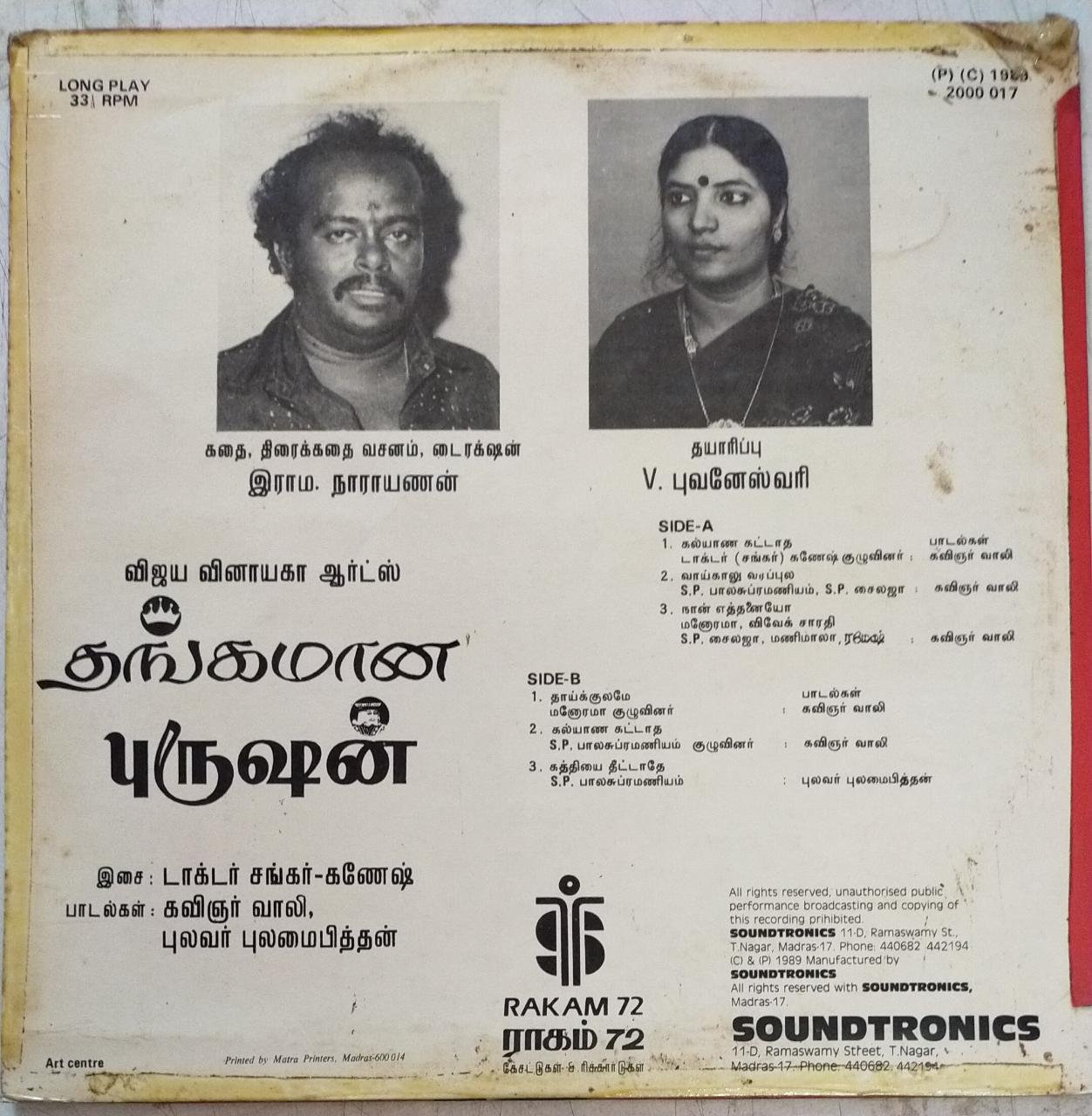 Thangamana Purusan Tamil Film LP Vinyl Record by Shankar Ganesh