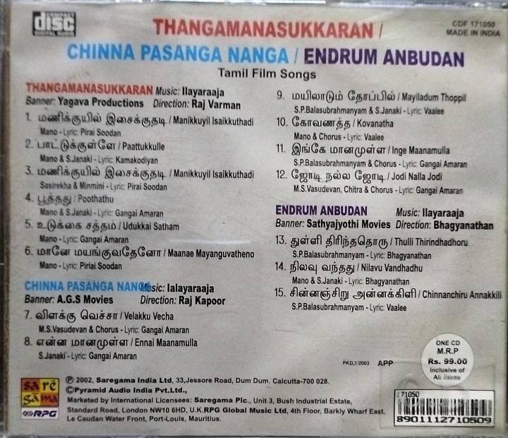 Thangamanasukkaran-Chinna pasanga Naanga- Endrum Anbudan Tamil Film Audio CD by Ilayaraaja