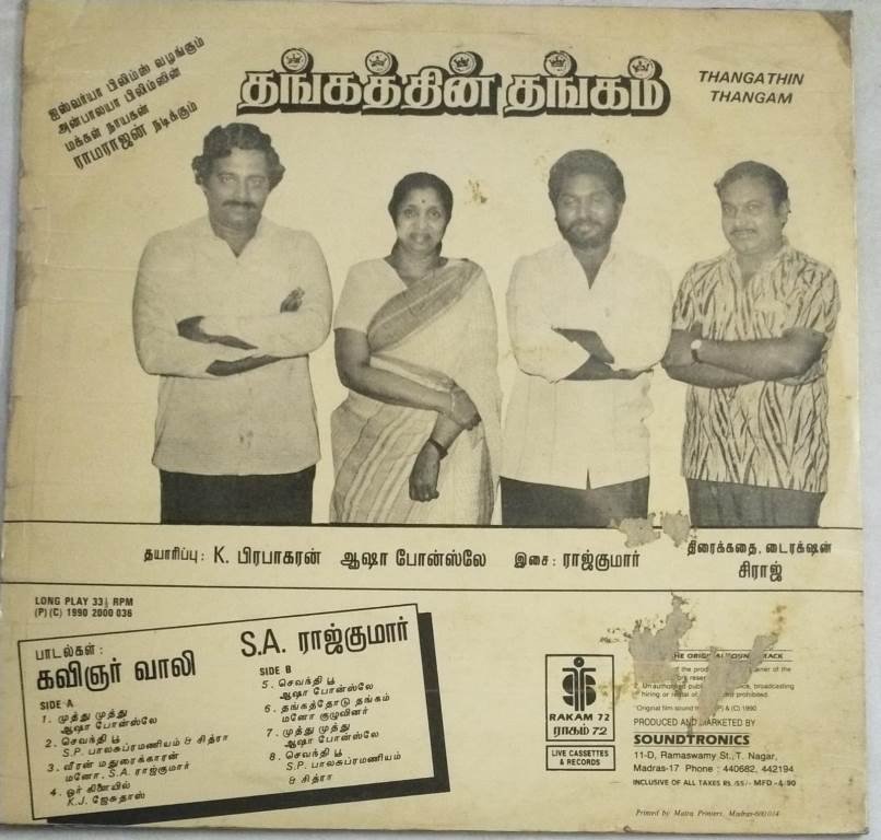 Thangathin Thangam Tamil Film LP Vinyl Record by S A Rajkumar
