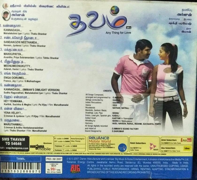 Thavam Tamil Film Audio CD by D Imman