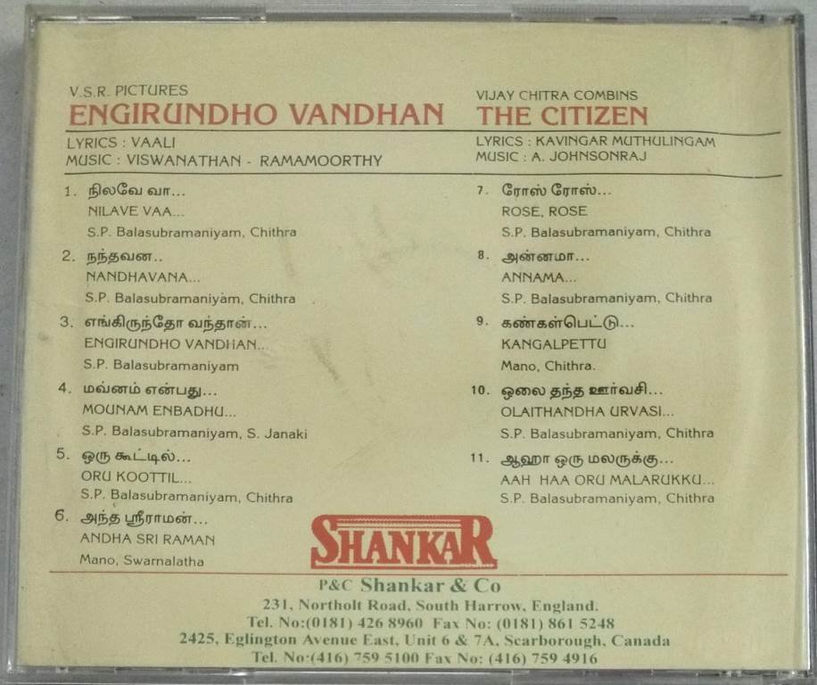 The Citizen- Engiruntho Vanthal Tamil Film Audio CD MS Viswanathan