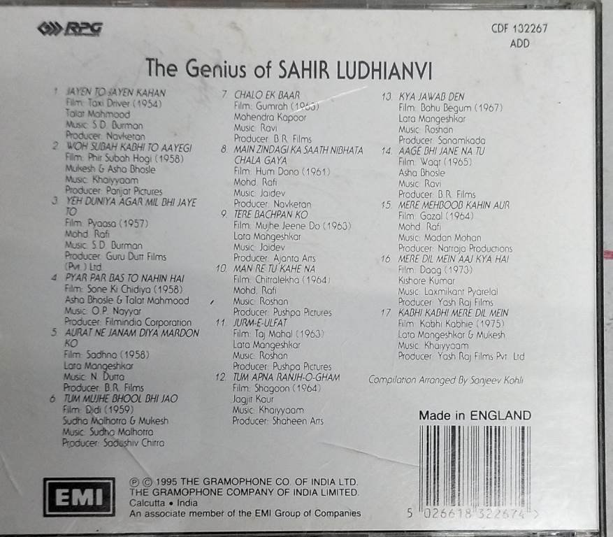 The Genius of Sahir Ludhianvi Hindi Audio CD