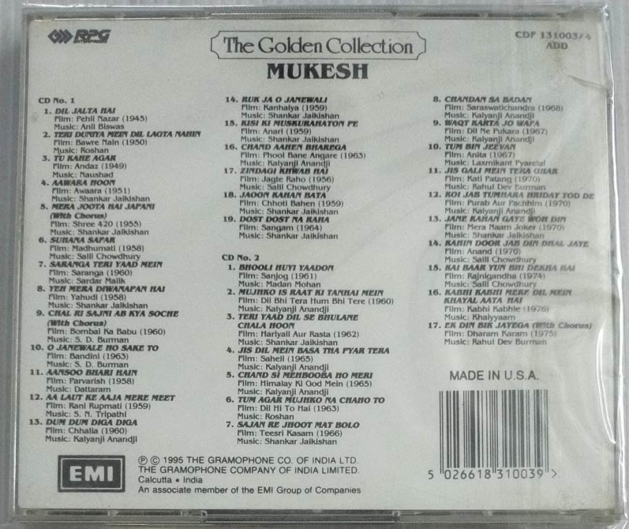 The Golden Collection Mukesh Songs from Hindi Films Audio CD ( 2 CD pack)