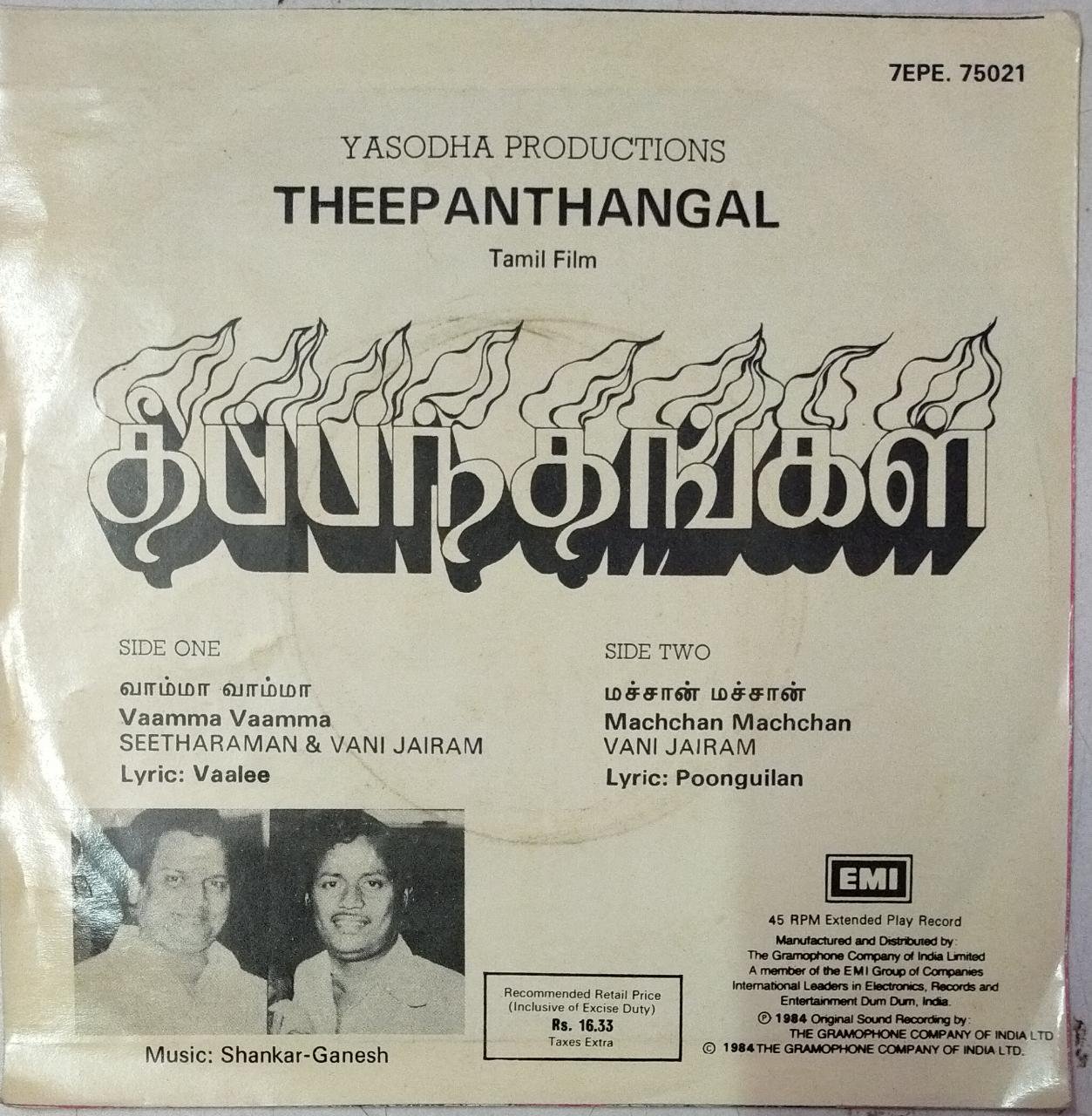 Theepanthangal Tamil film EP Vinyl Record by Shankar Ganesh