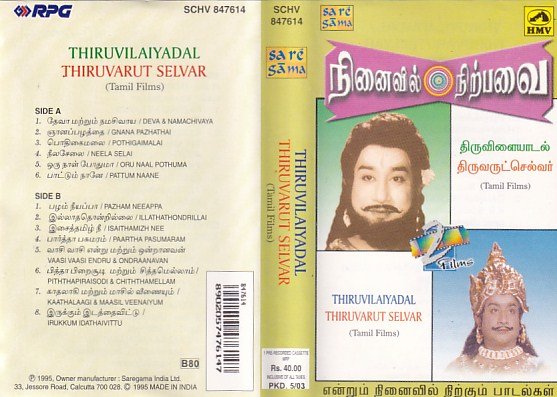 Thiruvilayadal- Thiruvarutchelvar Tamil Film Audio cassette