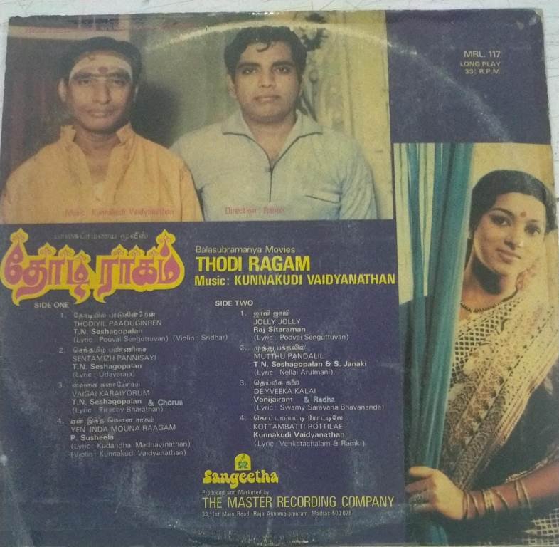 Thodi Ragam Tamil Film LP Vinyl Record by Kunnakudi Vaidyanathan