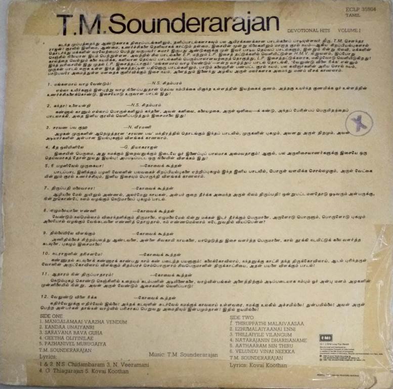 TM Sounderarajan sungs Tamil Devotional LP Vinyl Record