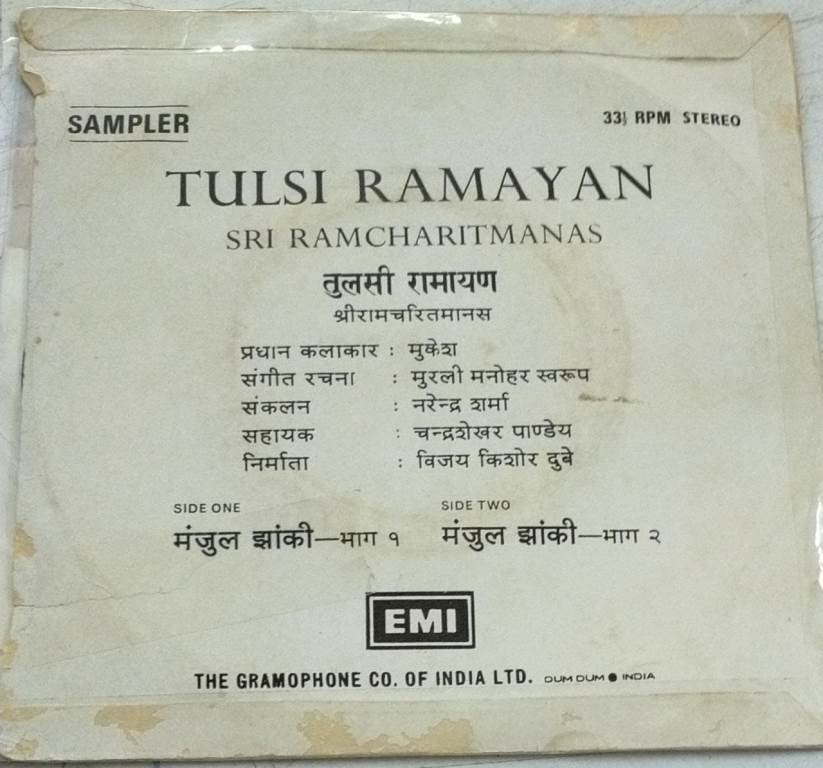 Tulsi Ramayan Hindi Film EP Vinyl Record by Sri Ramcharitmanas