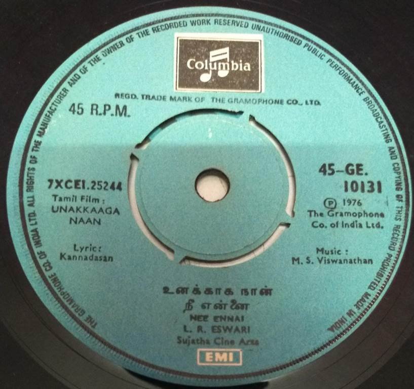 Unakkaaga naan Tamil Film EP Vinyl Record by M S Viswanathan