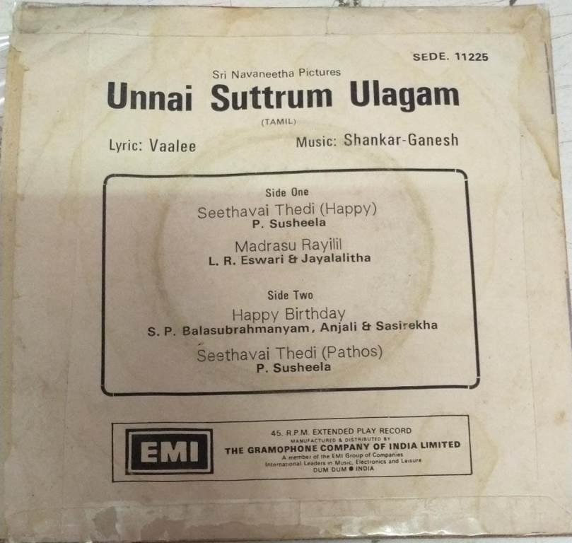 Be the first to review “Unnai suttrum Ulagam Tamil Film EP Vinyl Record by Shankar Ganesh”