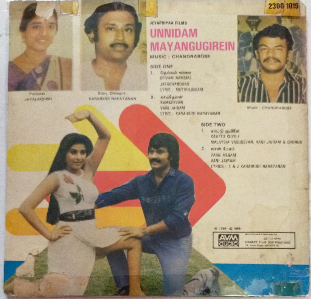 Unnidam Mayangugirein Tamil Film EP Vinyl Record by Chandrabose
