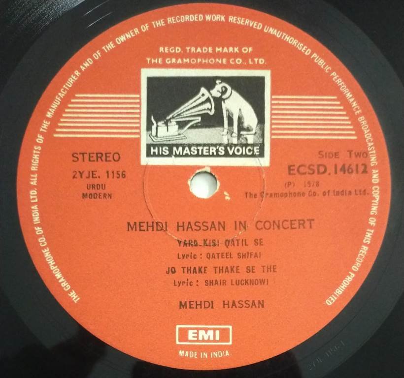 Urdu Modern Mehdi Hassan In Concert Hindi Film LP Vinyl Record 14612