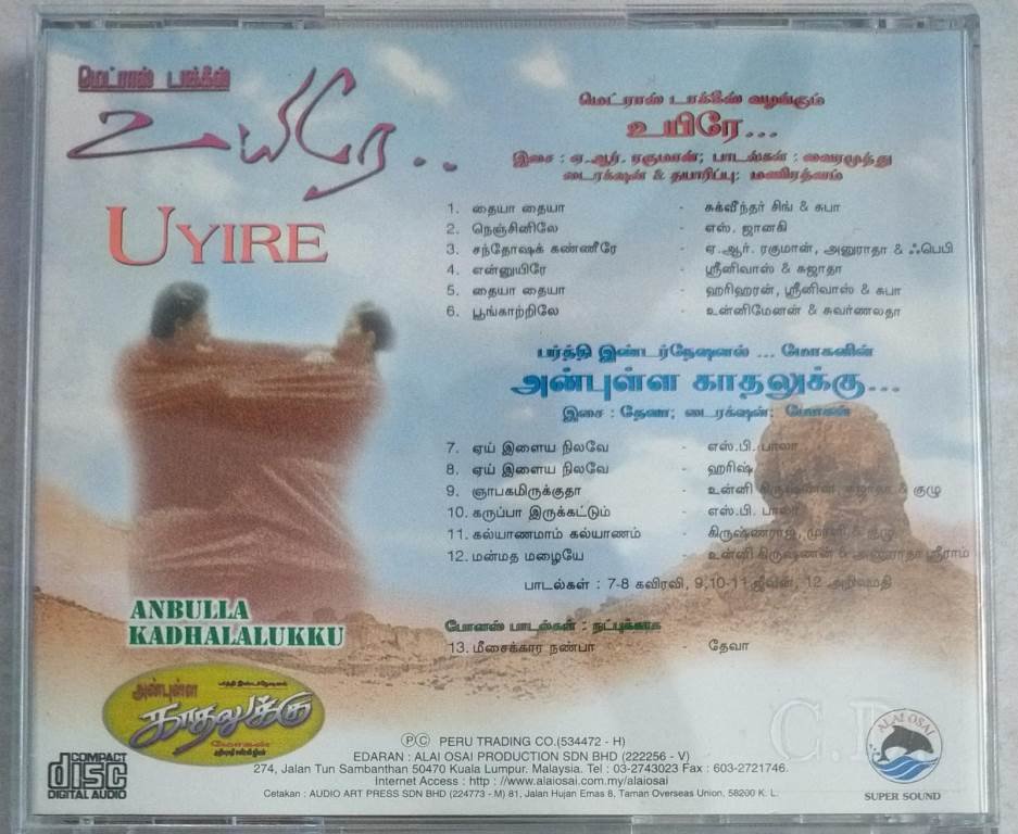 Uyire- Anbulla Kathalukku Tamil Film songs Audio CD by A R Rahman