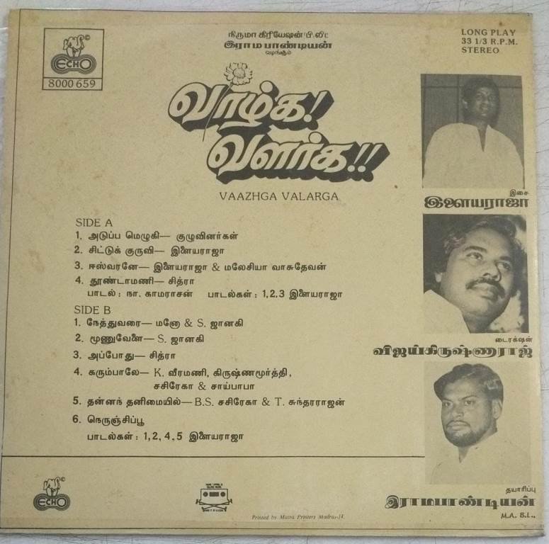 Vaazhga Valarga Tamil Film LP Vinyl Record by Ilayaraaja