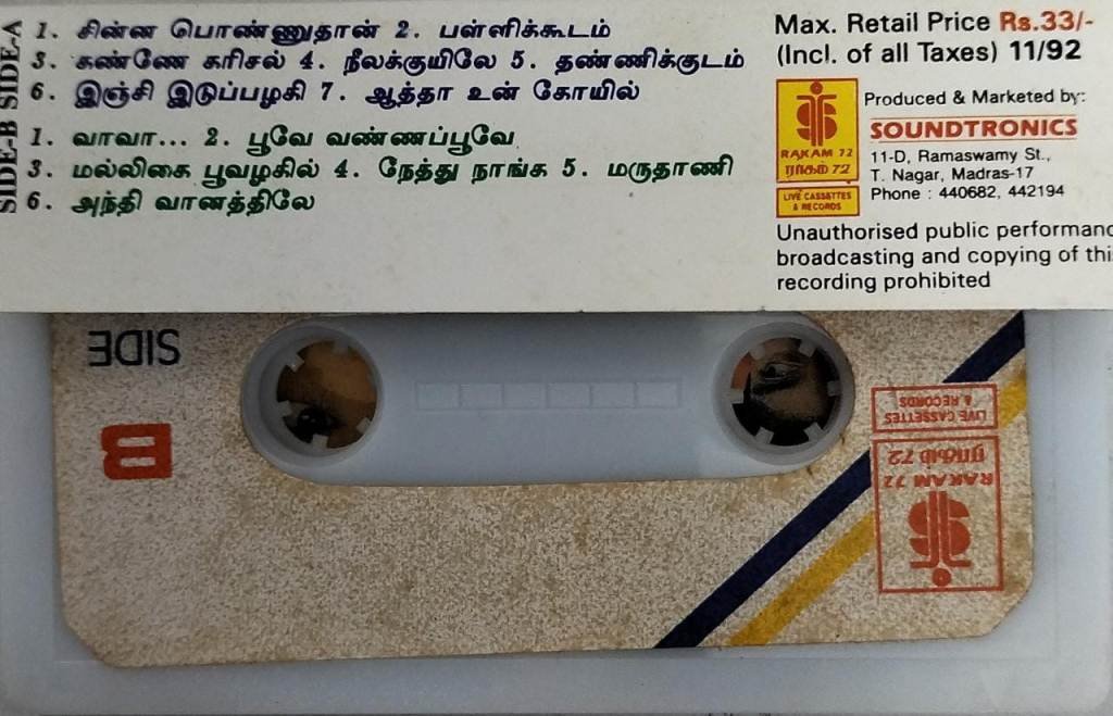 Vaikasi Poranthachu – Annai Vayil Tamil Film Audio Cassette by Deva