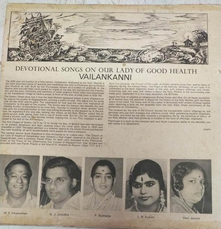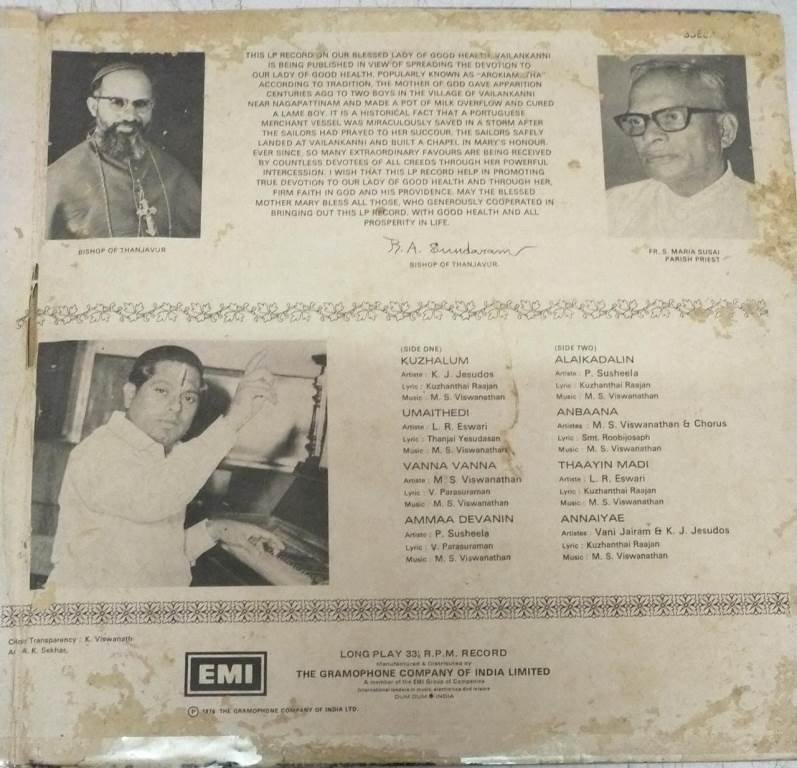 Vailankanni Christian Devotional songs Tamil LP Vinyl Record by MS Viswanathan