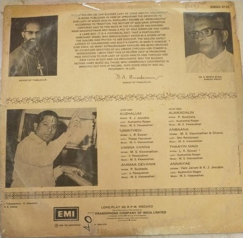 Valainkanni Chritian Tamil songs LP Vinyl Record