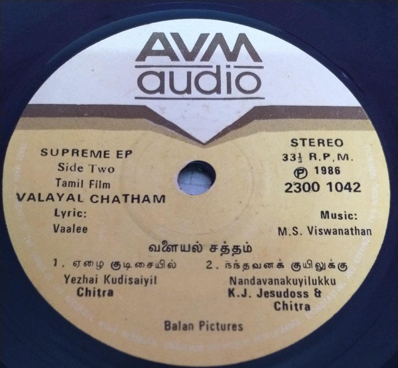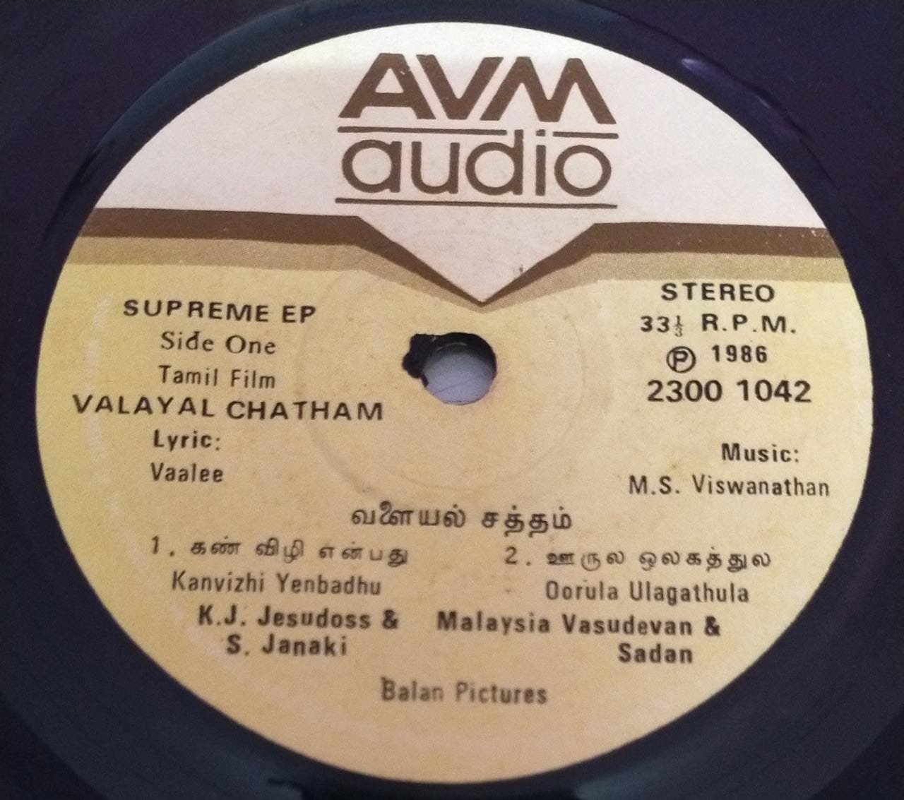 Valayal Chatham Tamil Film EP Vinyl Record by M S Viswanathan