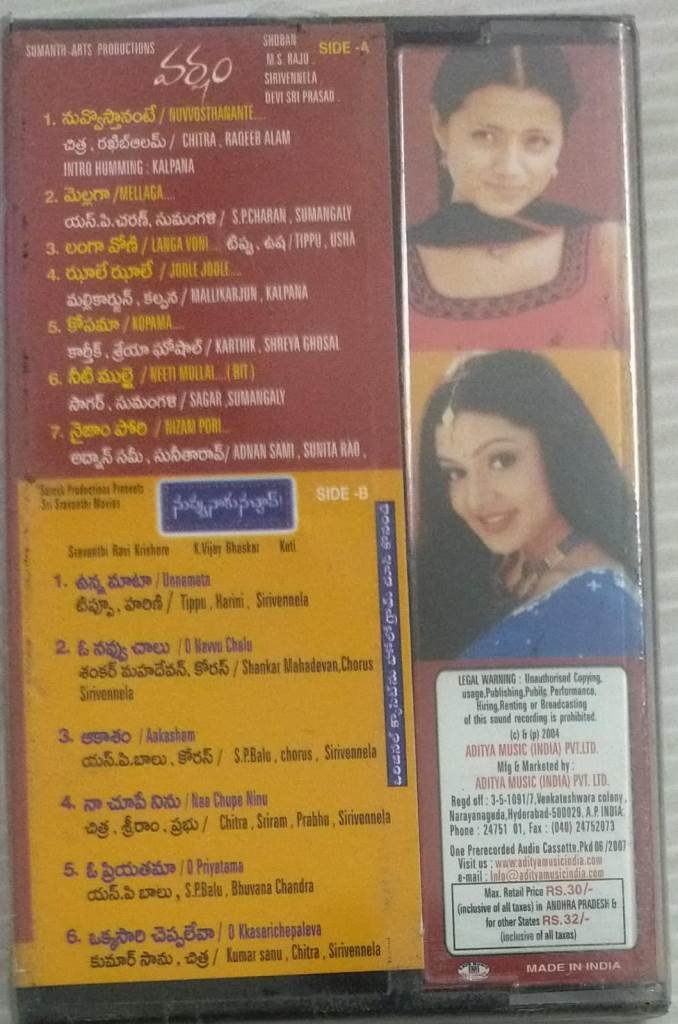 Varsham- Nuvve Naaku Navhay Telugu Film songs Audio Cassette ( sealed pack)