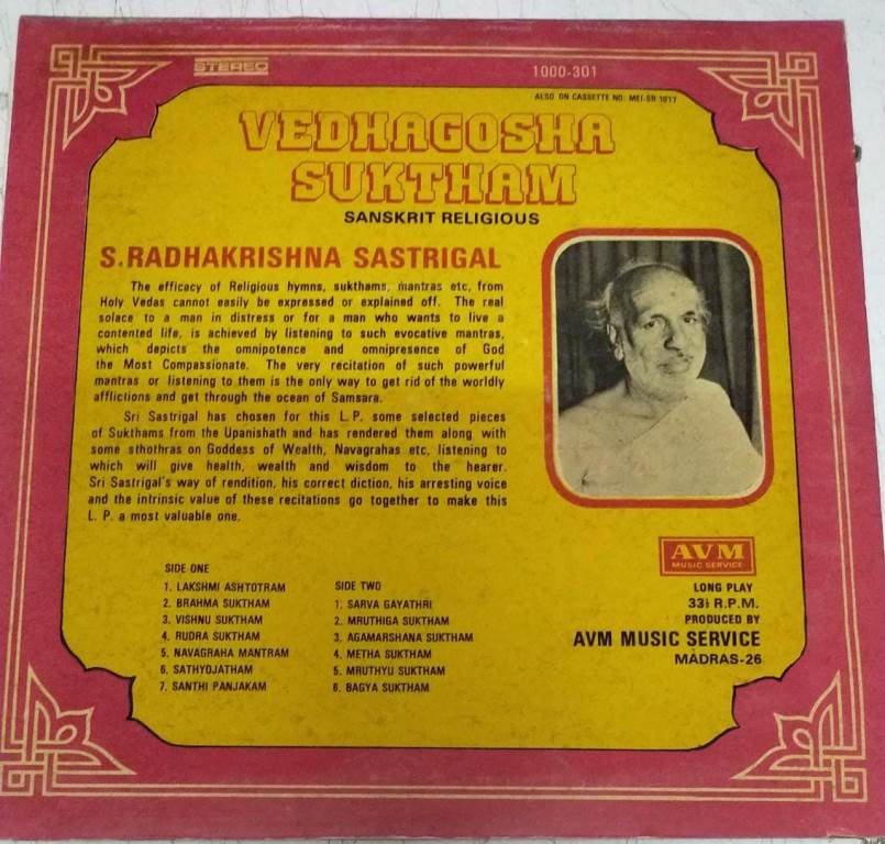 Vedhagosha Suktham Hindu Devotional LP Vinyl Record