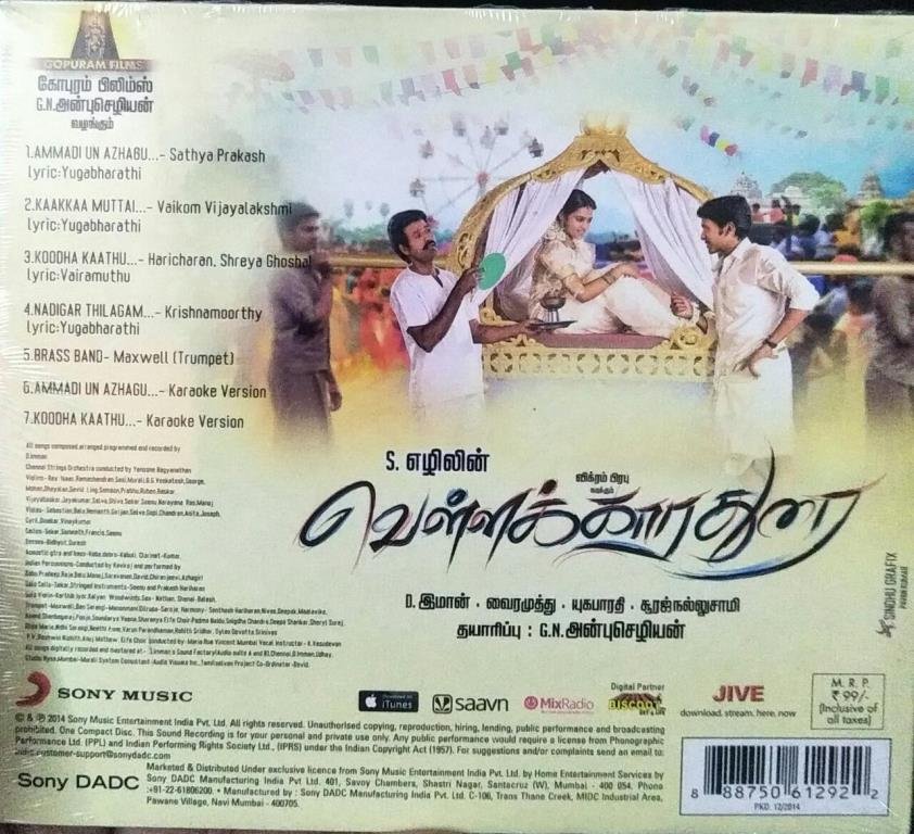 Vellakkara durai Tamil FIlm Audio CD by D Imman
