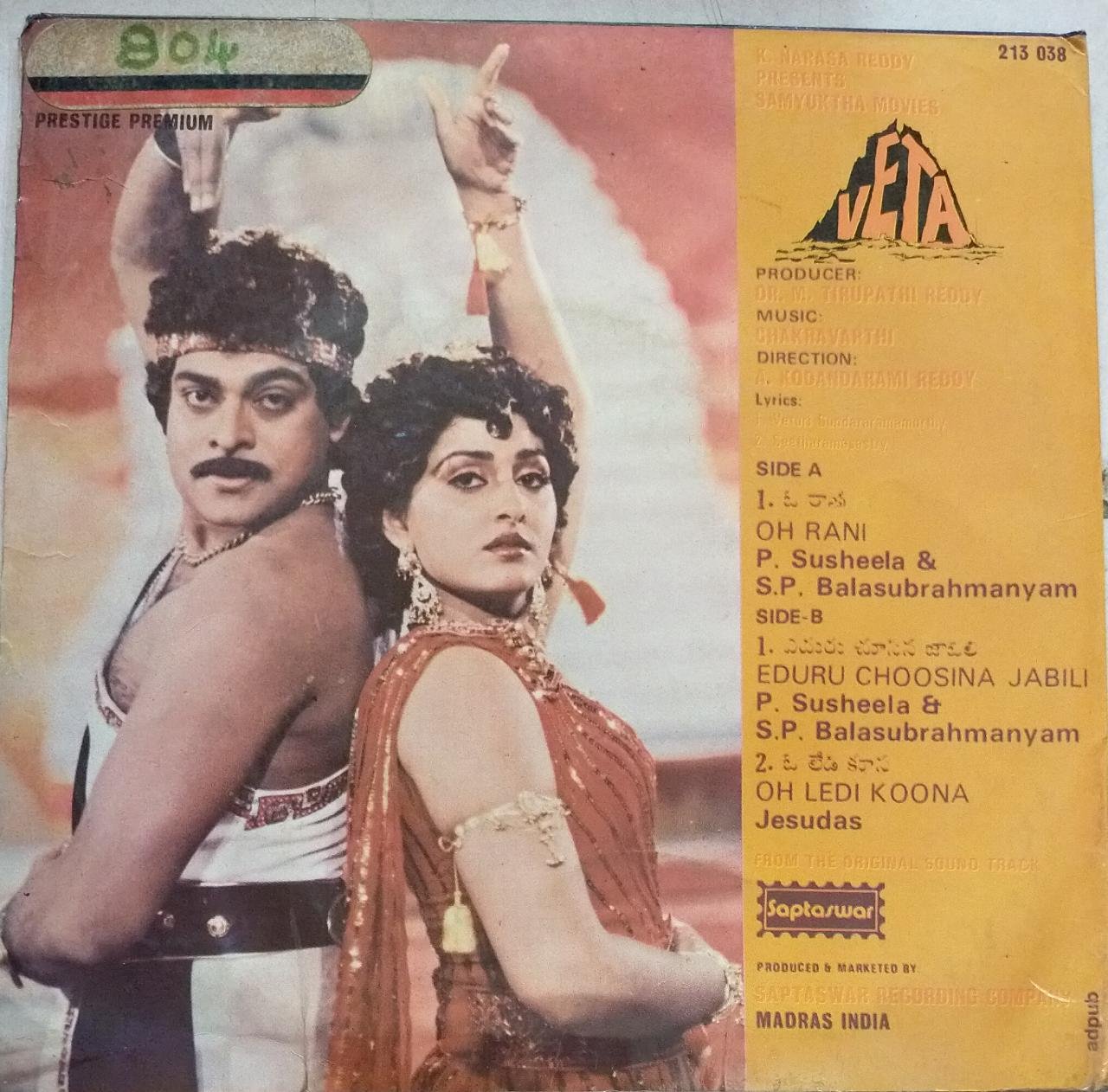 Veta Telugu Film EP Vinyl Record by Chakravarthy